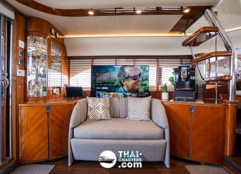 Аренда яхты на Пхукете Princess 65 ft Oceana рада предложить вам три каюты (6 спальных мест), просторный салон и полностью оборудованную кухню. Огромный флайбридж предполагает идеальное место для отдыха во время круиза по островам Андаманского моря. Большой обеденный стол может разместить до 8 гостей и подходит для трапезы на свежем воздухе.