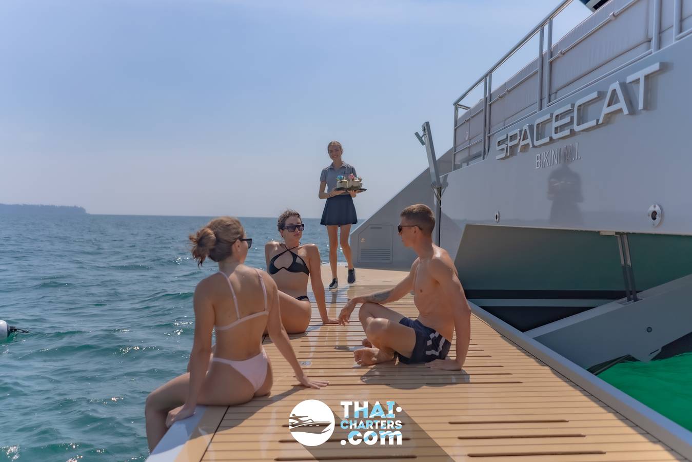 Аренда моторного катамарана «Spacecat 118ft» — это сочетание инновационного дизайна, роскоши и высоких скоростей. Этот внушительный катамаран длиной 36 метров подарит вам уникальный опыт плавания по Андаманскому морю с максимальным комфортом, просторными зонами отдыха и первоклассным сервисом.