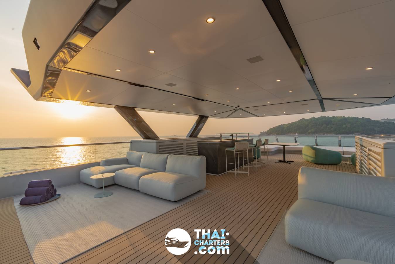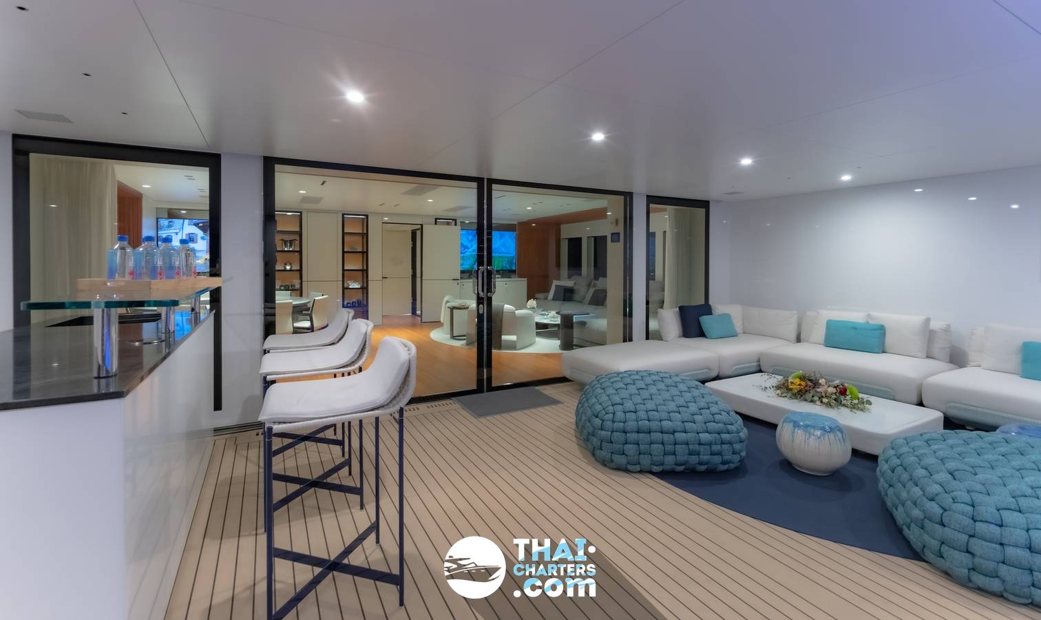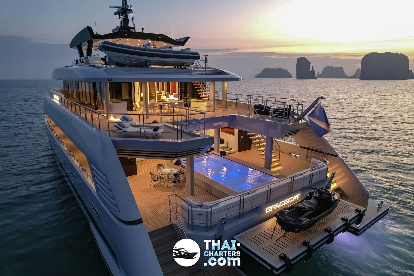 Моторный катамаран «Spacecat 118ft» — это один из самых современных и комфортабельных морских судов класса люкс, доступных для аренды в Таиланде. Благодаря конструкции, судно отличается превосходной устойчивостью на воде и плавностью хода, что гарантирует комфорт даже при волнении моря.