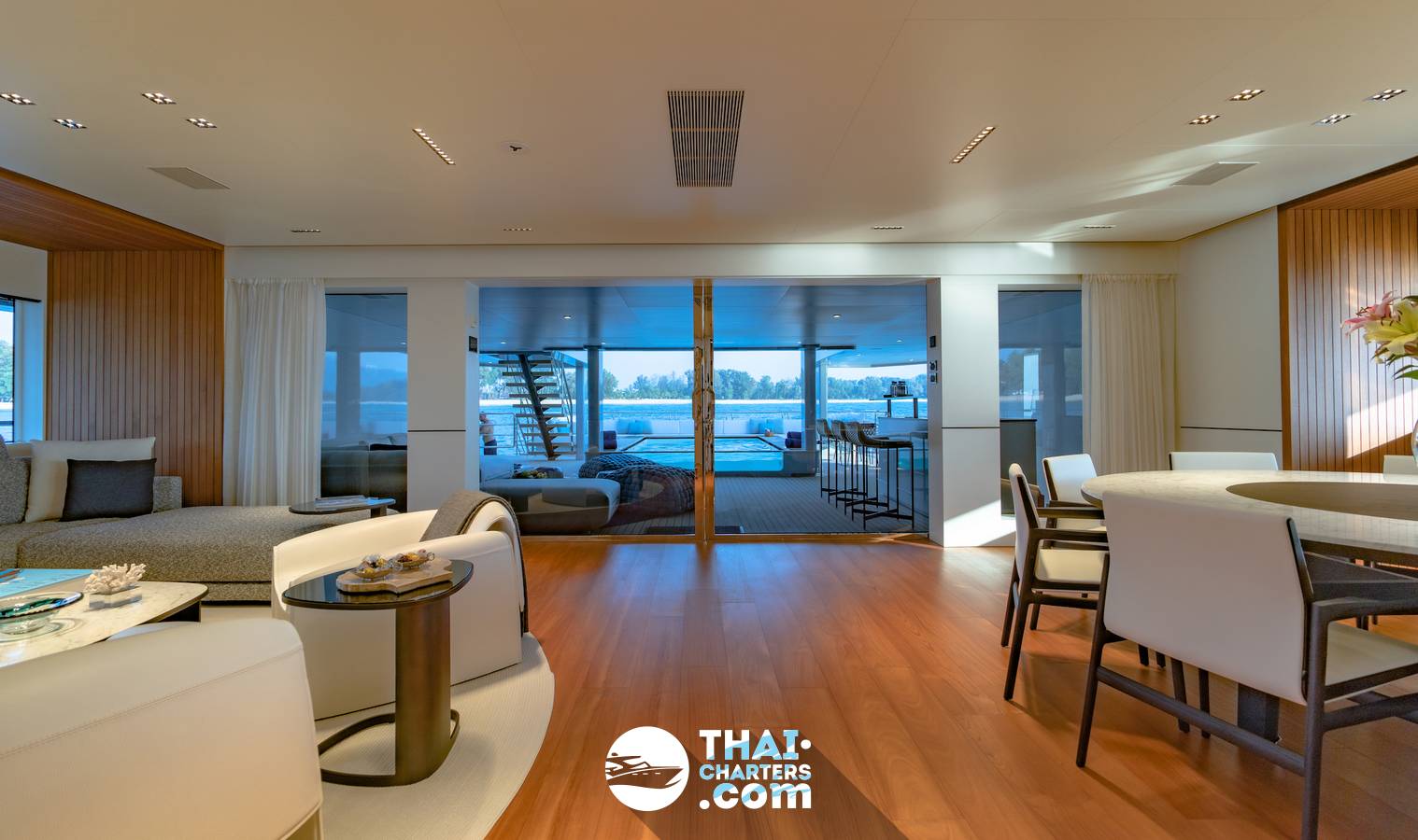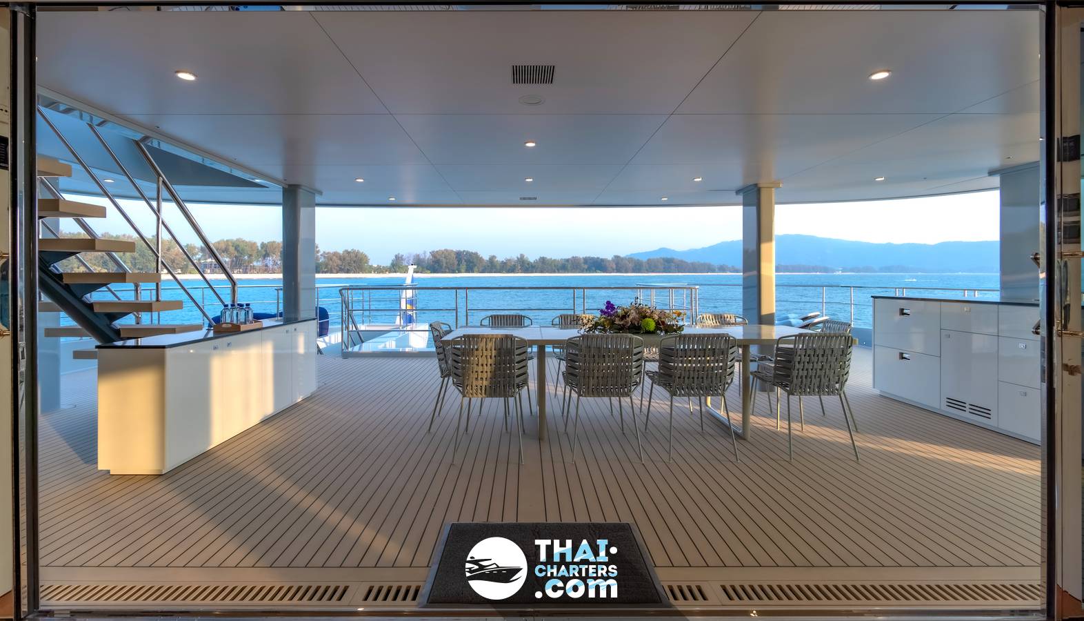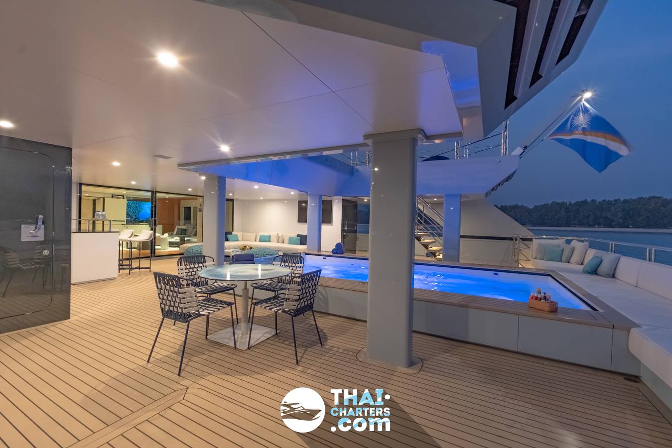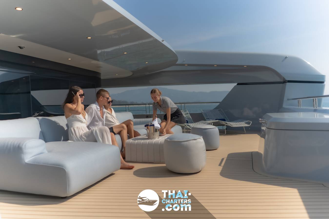 Моторный катамаран «Spacecat 118ft» — это один из самых современных и комфортабельных морских судов класса люкс, доступных для аренды в Таиланде. Благодаря конструкции, судно отличается превосходной устойчивостью на воде и плавностью хода, что гарантирует комфорт даже при волнении моря.