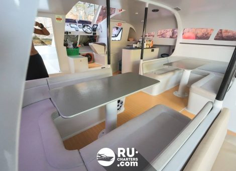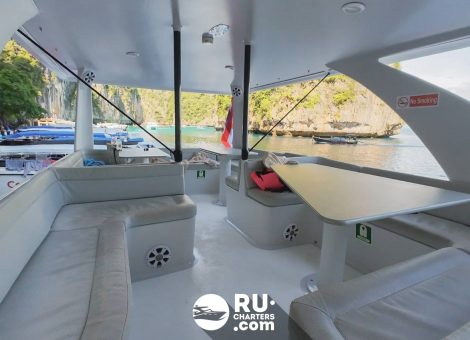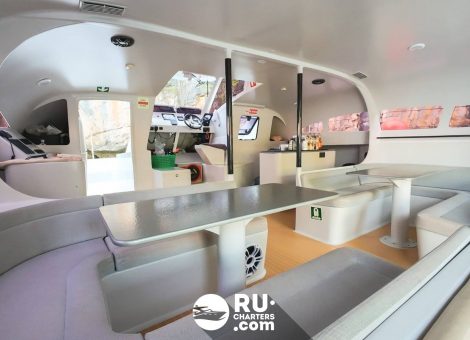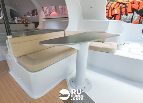 With a «Stealth Black 47ft» rental in Phuket, you can explore the magnificent bays, beaches and islands of the Andaman Sea, swim among coral reefs and see amazing tropical fish. In addition, the catamaran is suitable for a romantic cruise.