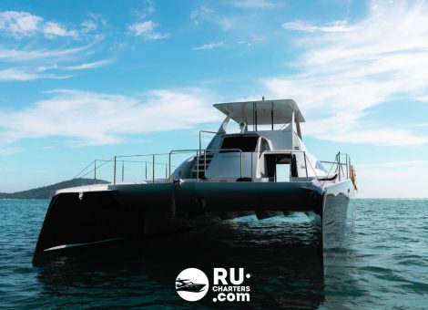 Renting a «Stealth Black 47ft» motor catamaran in Phuket offers the opportunity to spend an unforgettable vacation on one of the most beautiful islands in Thailand. Stylish and modern catamaran is equipped with everything you need for a comfortable journey through the waters of the Andaman Sea.